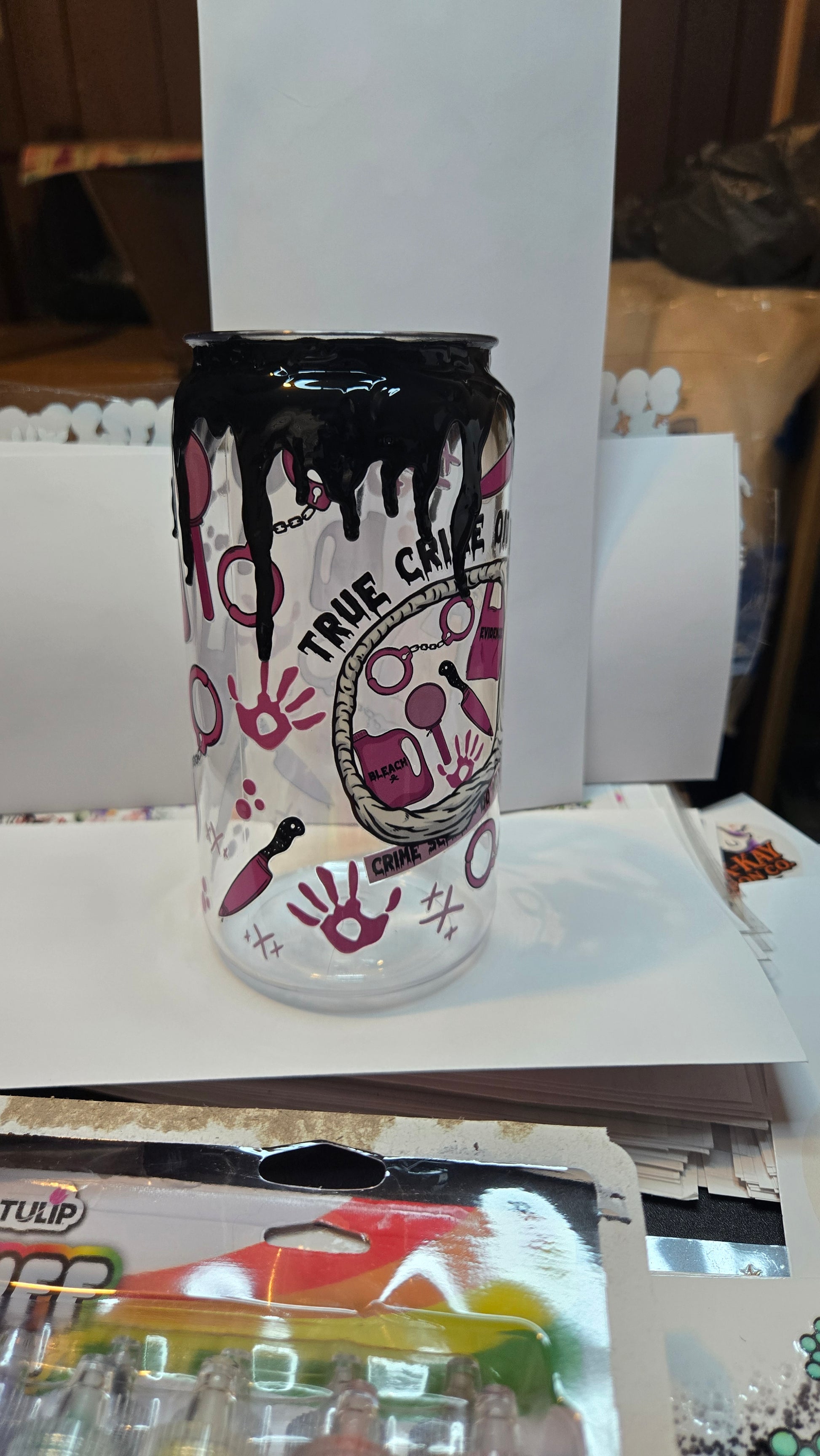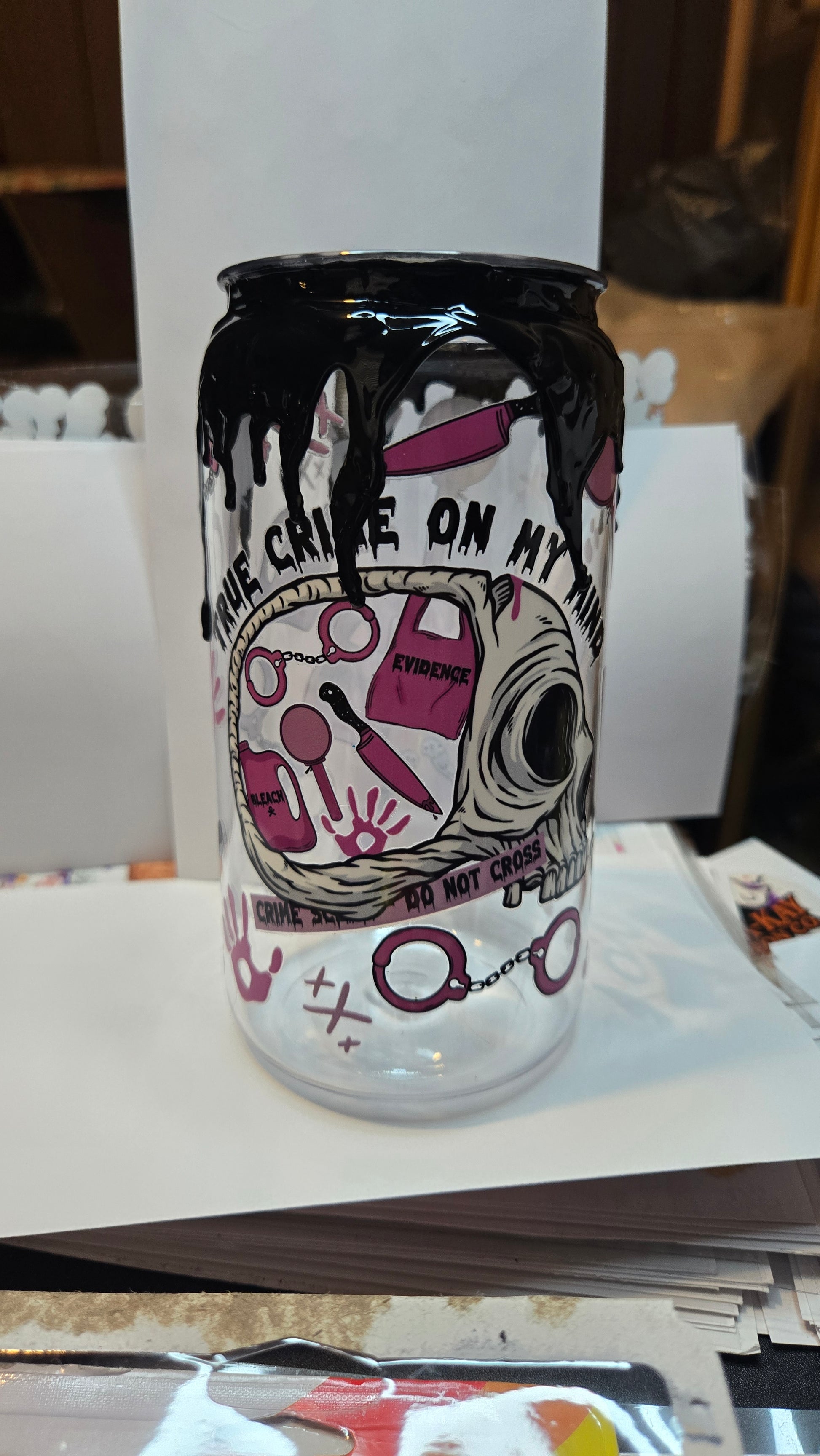 16 oz SWT RTS True crime on my mind with black drip